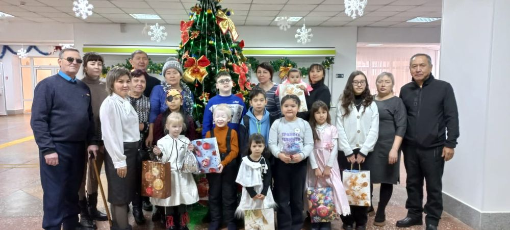 Казахское общество слепых города Аксу совместно со спонсорами провели праздничные мероприятия на которых вручили новогодние подарки инвалидам по зрению (членам ОО КОС)