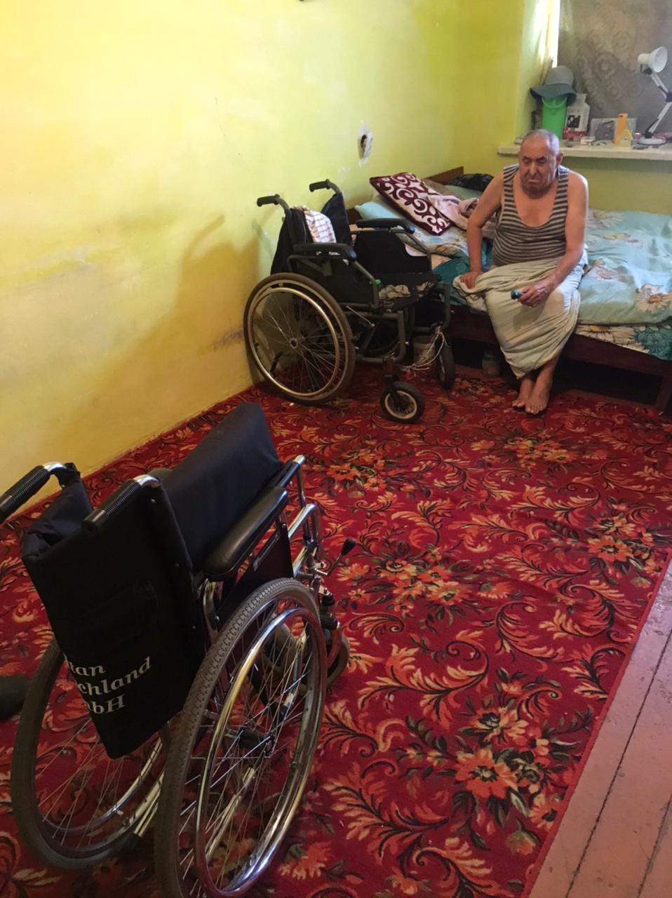 Казахское общество слепых г Аксу совместно с волонтерами города предоставили инвалиду 1 группы Адамову Адильбеку инвалидную коляску.
